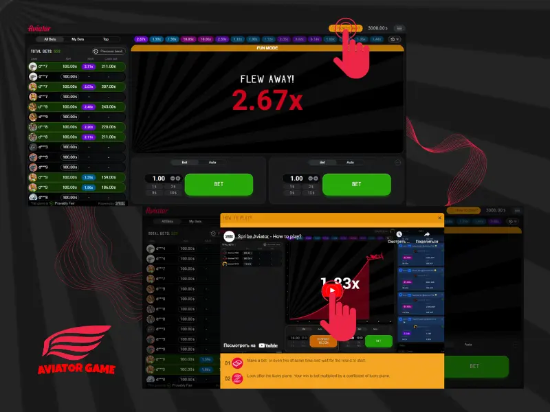 Os jogadores do Aviator Spriber Gaming são recebidos por um visual impressionante ao iniciar o jogo: um avião vermelho voando alto acima da tela. O avião decola e pousa na pista, aumentando lentamente a altitude. A velocidade do ar não é controlada, é determinada aleatoriamente e não pode ser planejada.