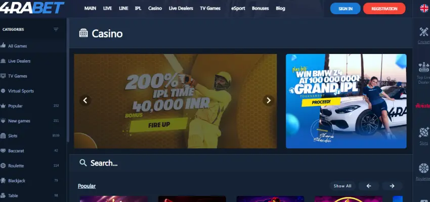 O 4Rabet está entre os sites de apostas mais favorecidos e bem otimizados para os índios, devido ao seu livro esportivo superior e a uma extensa variedade de jogos de cassino on-line. Além disso, a plataforma possui uma seção dedicada para opções de apostas ao vivo, que inclui recursos de alto nível, como cashouts, estatísticas ao vivo e streaming.