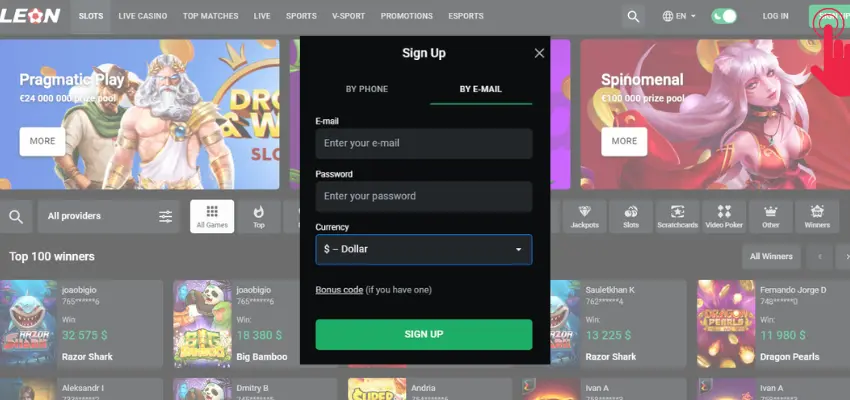 Graças à sua interface amigável, o registro no Leon Casino Aviator é um processo rápido e direto. A característica exclusiva desta plataforma é que os jogadores podem se inscrever de duas maneiras - por telefone ou e -mail. Aqui estão as etapas a seguir: